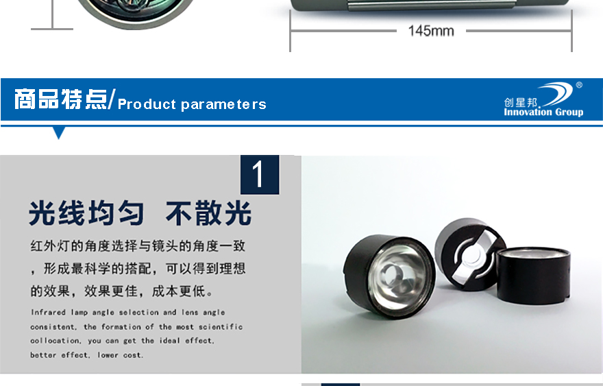 ★采用窄角聚光透鏡集中有效光源,減少發(fā)散光損失,有效減少光污染;