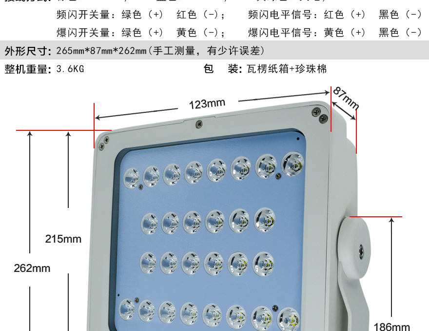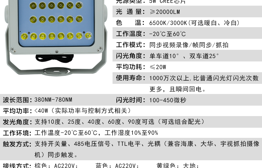 ★發光脈沖寬度可調,適應各種攝像機的曝光時間;