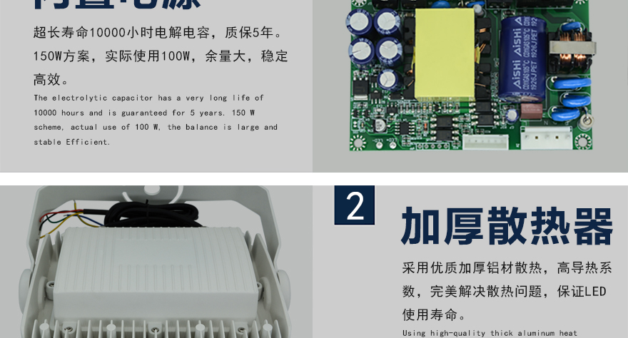 ★鋁合金壓鑄外殼,加厚鰭形散熱后蓋,散熱好,壽命長;