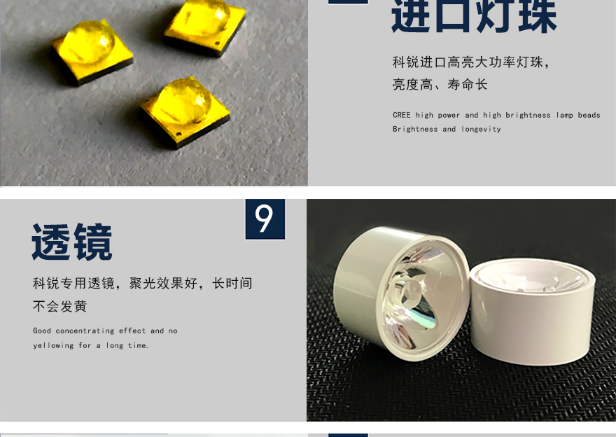 ★可選用不同角度(10?、25?、40?、60?、90?)的聚光透鏡集中有效光源,減少發散光損失,有效減少光污染;
